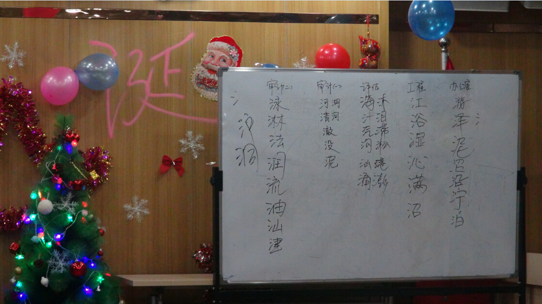 今年的平安夜活動比起往屆,增添了許多亮點(diǎn)。此次聯(lián)歡的節(jié)目內(nèi)容形式多樣、豐富多彩。聯(lián)歡以張局長致辭開場,集體許愿將一片溫馨融洽的氣氛帶入了現(xiàn)場;集體熱身舞蹈更是讓大家感到了濃濃的節(jié)日氛圍;基建部的詩歌朗誦《我希望》讓大家經(jīng)受了一次思想的洗禮,審計(jì)一部動感十足的一曲《奔跑》更是深受大家的喜愛;審計(jì)二部《租個(gè)女友回家過年》恢諧生動的表演引來一陣又一陣的笑聲;評估部精彩的《舞蹈大串燒》更是讓大家忍不住集體點(diǎn)贊;緊張又刺激的腦筋急轉(zhuǎn)彎、踩氣球、猜字謎、削蘋果等游戲,一次次的將晚會氣氛推向高潮。掌聲和歡呼聲此起彼伏,臺上臺下成了一片激情四溢的海洋。辦公室、財(cái)務(wù)部、文化部的詩歌朗誦《相信未來》之后,全體家人熱情合唱了司歌《我相信》,表達(dá)了大家對公司的深深的情懷和對未來無限的希望。